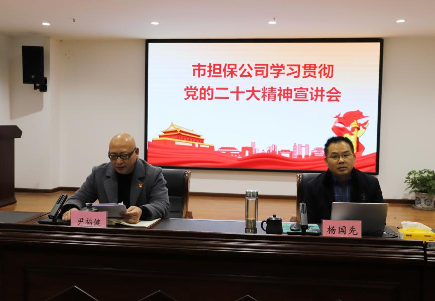 為深入學(xué)習(xí)貫徹黨的二十大精神,12月1日,市擔(dān)保公司邀請(qǐng)市委黨校副校長(zhǎng)楊國先作黨的二十大精神專題宣講。市擔(dān)保公司黨支部書記、董事長(zhǎng)尹福健主持會(huì)議。