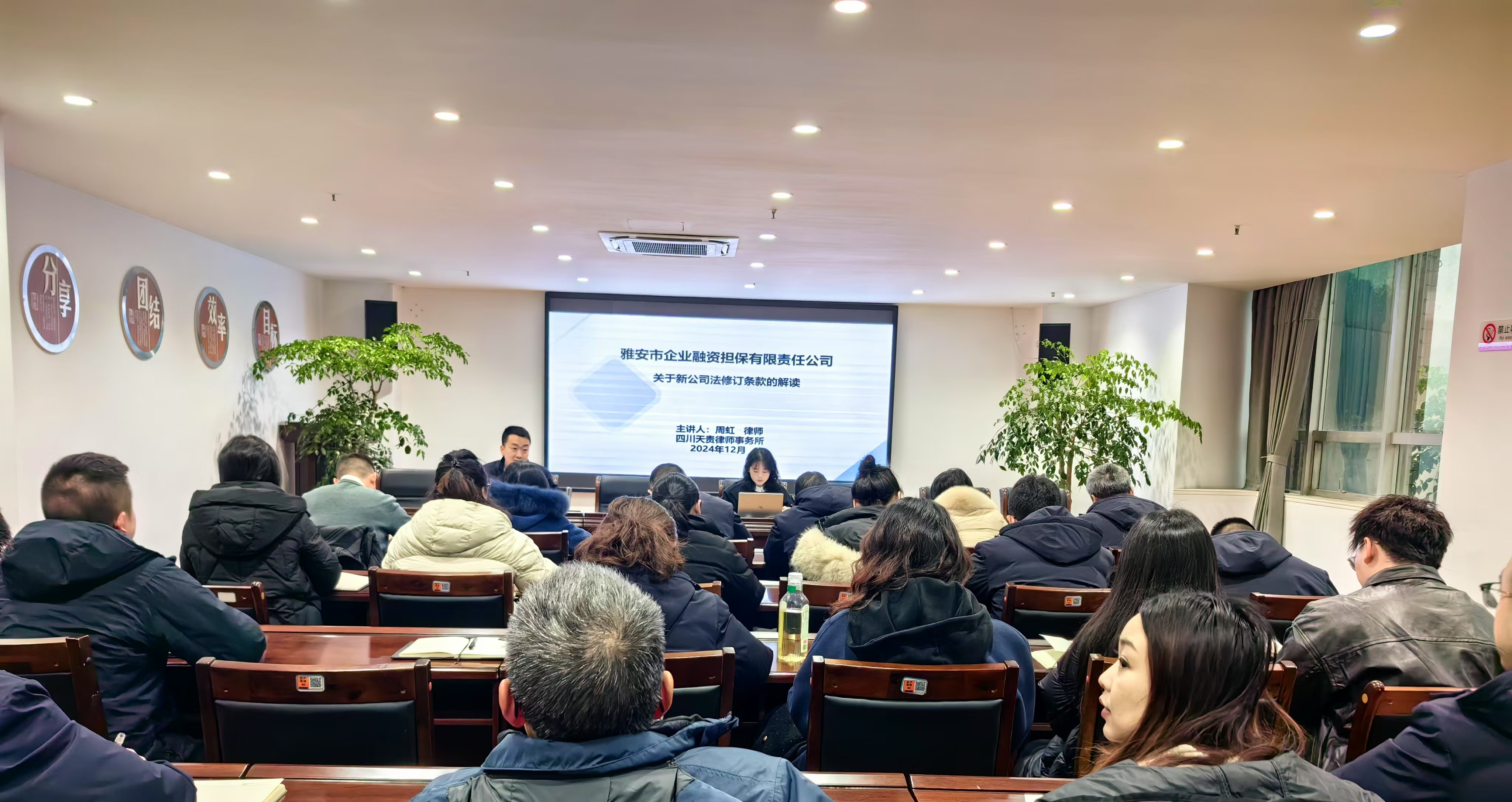 新修訂的《中華人民共和國公司法》已于2024年7月1日正式施行。為做好新舊法條的銜接工作,幫助公司精準(zhǔn)把握新公司法的核心要義,提高公司在復(fù)雜市場環(huán)境中防范和化解法律風(fēng)險能力,2024年12月13日上午,市擔(dān)保公司特邀請具備豐富法律實踐經(jīng)驗的周虹律師,組織開展了新《公司法》專題學(xué)習(xí)培訓(xùn)講座。